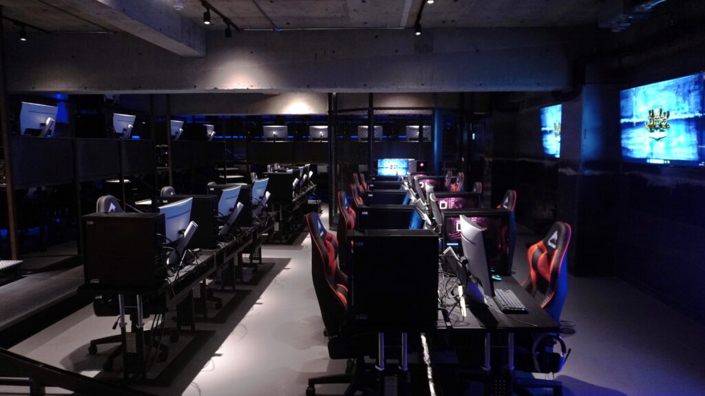 鉄拳・ストリートファイターなど格闘ゲームを盛り上げる八角形(オクタゴン)の金網対戦エリアやMMO専用席として、MMOに特化したモニターやデバイスを揃えたハイクオリティなゲーム環境。